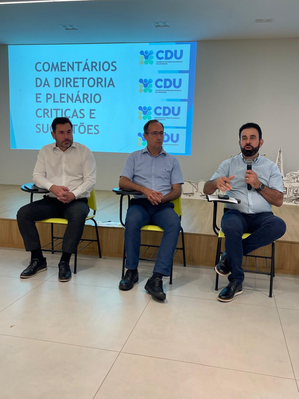 A reunião também discutiu iniciativas voltadas à capacitação de lideranças. O consultor Ricardo Botelho apresentou uma proposta de curso do Sebrae voltado aos membros do plenário e das câmaras técnicas do CDU, com foco no desenvolvimento de liderança e uso de tecnologia na gestão.
