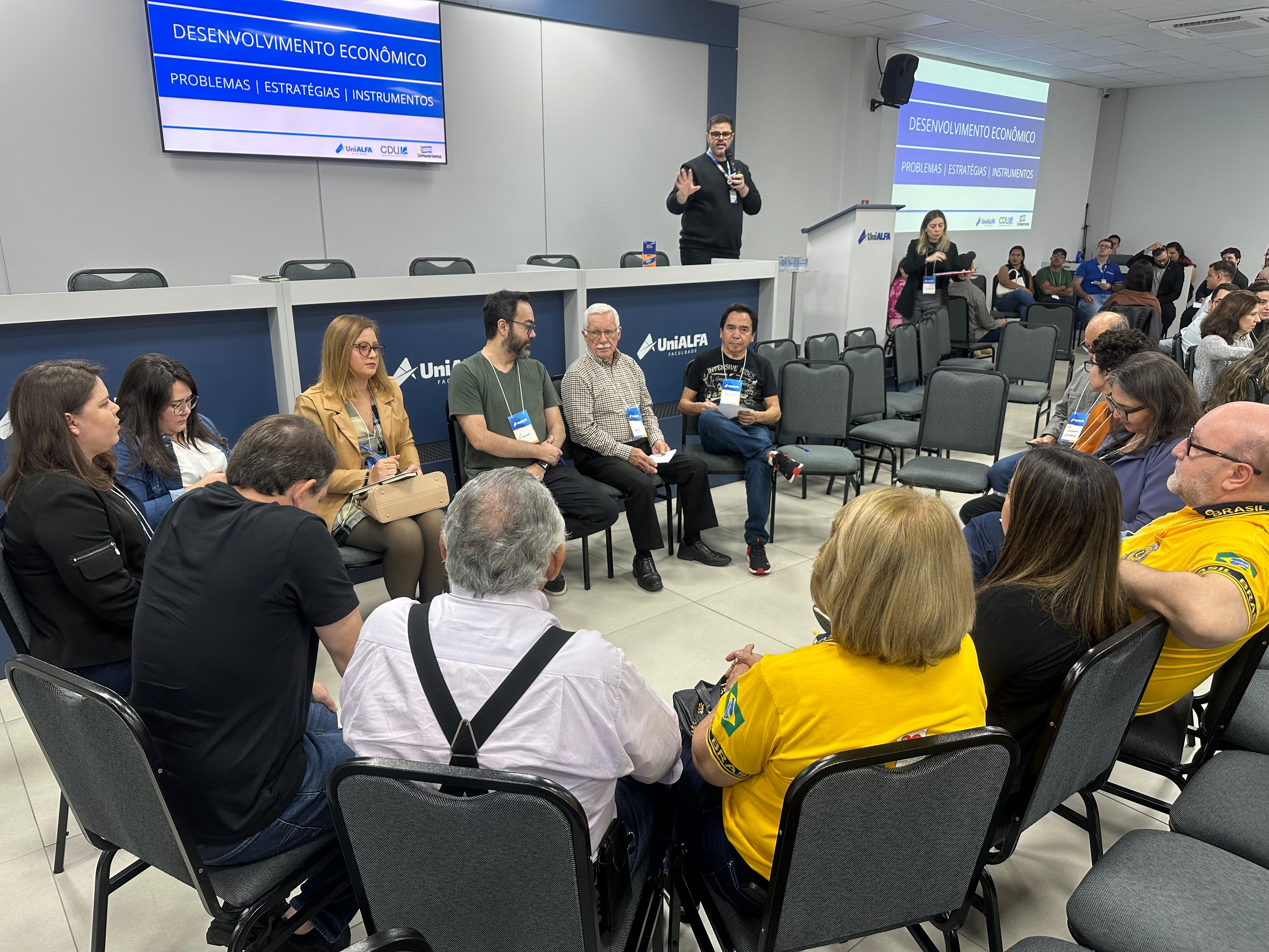A mesa de abertura foi composta pelo Secretário Municipal de Aceleração Econômica, Sérgio Vercezi Filho; o Presidente do Conselho de Desenvolvimento de Umuarama, Valcir Simão; o Diretor da Faculdade Unialfa, Roberto Bianchi Catarin; e Renato Sérgio Ferrareze, representando o Sicoob. O evento foi conduzido pelo professor Thiago Prado.